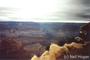 We headed to the Imax theatre which contains a 7 story screen, 70mm film, 6 track stereo sound. 35 mins approx. The pictures were breathtaking. Made in 1984, the film wasn't as good as todays but it was worth $7.00 (This was at Tuseyan) After that the long drive back. The trip actually took a total of 9 hours but we did have two hours lunch break and we got out at most stops. (Including Duck Rock!) I'm feeling slightly sick at the amount of money I spent. Hope I can get this stuff through customs! Anyway, asked Ute out! I remained quietly mysterious, not talking much to people but occasionally asking intelligent questions of the bus driver, (while on tour) then when we got to the IMAX theatre I was in line, but Bob waited for Ute to finish her ice cream. I saved two seats for them which they were pleased about. A calculated break of the ice! We got seats to the far back/top and in the middle. Very good seats for the film.