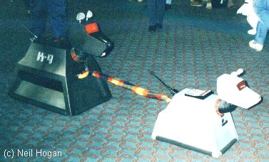 Unfortunately my video camera had somehow broken so lots of difficulty holding a good picture. Love Ainley's joke when he received his award. "Awards are like hemorroids. Every asshole gets one in the end!!" Each guest got up and collected an eyeball award. Jokes like "Things are looking up, the eyes have it etc proliferated. Except for the lame intros and fill in scenes it was quite enjoyable. Next was John Leeson (K9) and William Russell (Ian Chesteron). I was