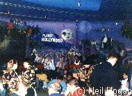 Went into the Star Trek shop and heard a kid say. "Oh what? They're cheaper in K-Mart" I liked the battery operated tribble. Lots & lots of exhibits. Put my face into a graphic scrambler. After I'd done it all I found out I should've faced closer. Oh well. Saw the Discoverers omnimax video which was fairly interesting, then raced out to take the bus to the Adler Planetarium in the hope of catching the ST-TNG show. No such luck. Got the Shining Star instead. Not very good but interesting. Same with the displays. I wish I'd had time to go on a boat cruise. Afterwards I went back (walked a long park at night) to collect my film/photos. $52 something and not all were printed (you only pay for those that are) I'd mistakenly got doubles. Graffoto is the only one I could find so I had little choice. Not impressed with the quality of the printing at all. (Size, condition, lack of completion etc) After dropping the photos back to my motel room I went out and searched for a place to eat. Couldn't find anything interesting until I rounded a corner and there it was. Planet Hollywood.